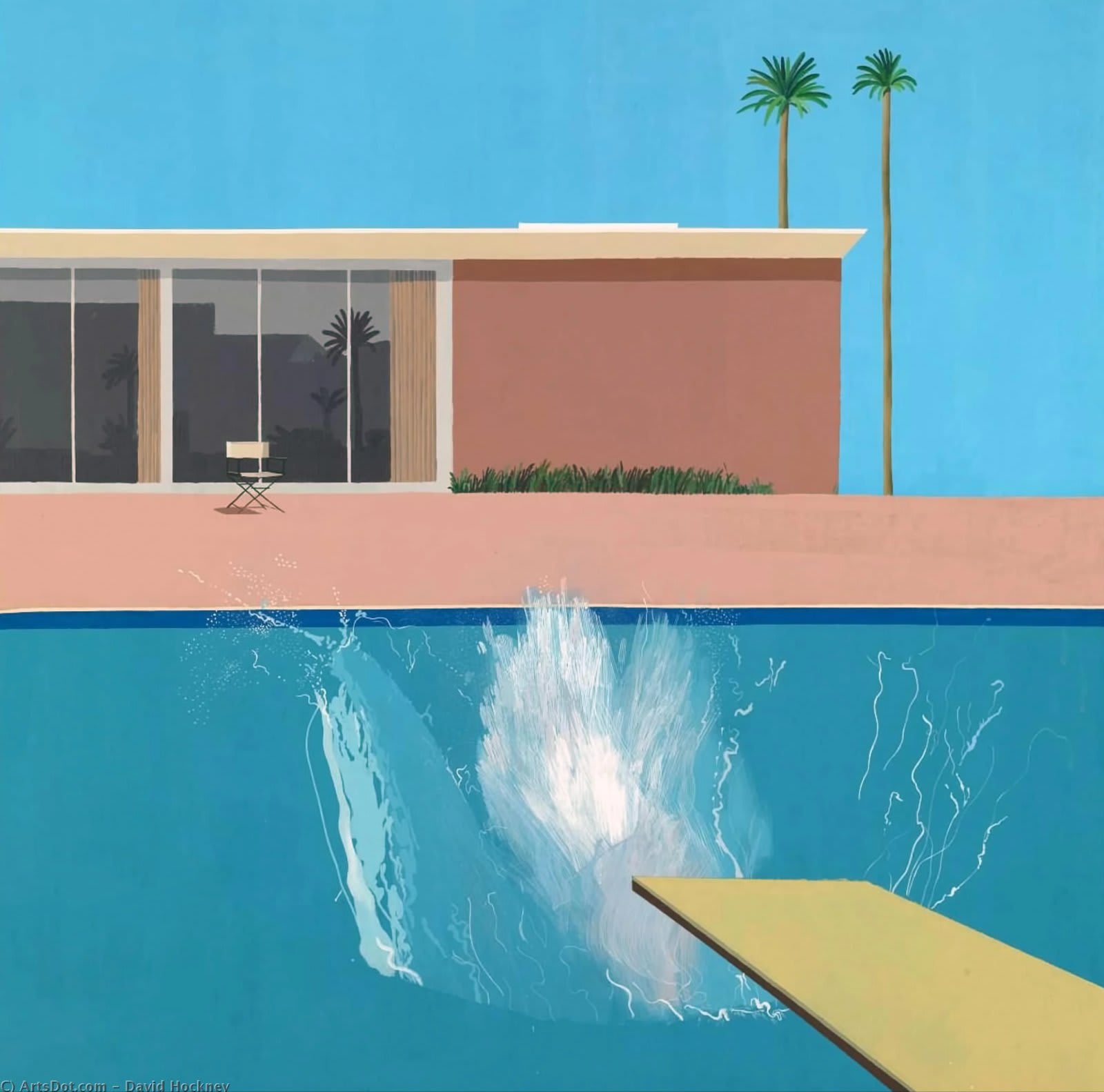 To discuss David Hockney’s oeuvre is to acknowledge his vivid Californian imagination. His renowned swimming pools, sun-drenched villas, and sharply outlined scenes have etched themselves into the annals of contemporary art history. One of his most iconic works, A Bigger Splash (1967), has transformed into a near-mythical image. Beyond the allure of the motif, this work embodies an epoch, a sense of freedom, and a visual modernity. In Hockney’s artistry, blue transcends the decorative; it evolves into a lexicon. His Californian landscapes paint an ideal vision of existence, almost cinematic, wherein art serves as an open window into a lifestyle. This iconic potency contributes significantly to his allure among collectors, rendering his works readily identifiable even to the uninitiated viewer.